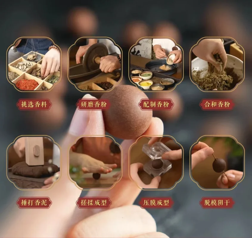 Definition: Small, honey-kneaded pellets of powdered spices. Literary Fame: The fictional 冷香丸 (Lěng Xiāng Wán) from Dream of the Red Chamber symbolized refinement. Usage: Burned on mica plates over charcoal for subtle, long-lasting fragrance.