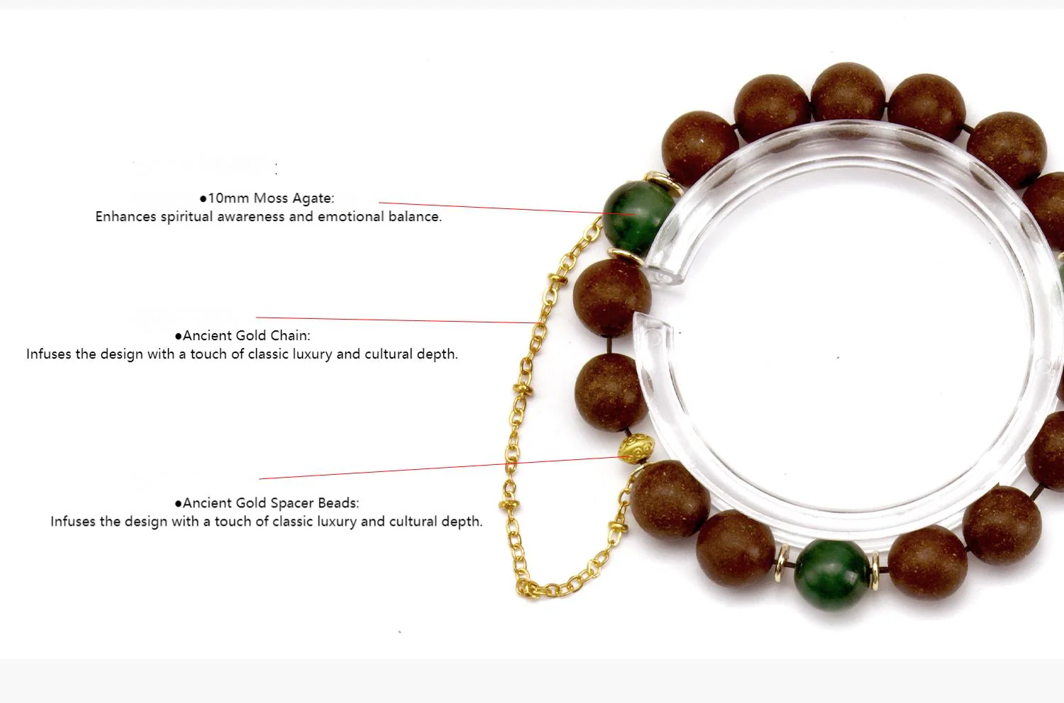 - 10mm Moss Agate – Enhances spiritual awareness and emotional balance.