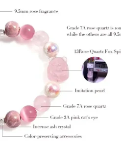 “Spirit” interprets the spirituality of the fox fairy, while “Pink Elixir” likens the combination of rose quartz and incense to a pink elixir that heals emotions. When you are plagued by self-doubt, the high-frequency energy of amethyst will tell you, “You are worthy of being deeply loved”; when you are overwhelmed by irritability, the scent of the incense beads and roses will lead you into a romantic sea of flowers; when you are expecting fate, the spiritual energy of the fox spirit will filter out the beautiful frequencies that are in sync with you, allowing the signal of your heart’s desire to reach precisely.