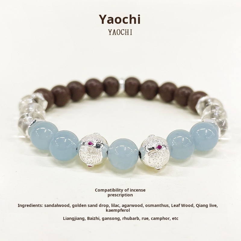 Embrace the essence of traditional Chinese herbal wellness with our YAOCHI Natural Herbal Aroma Bracelet. Meticulously handcrafted from natural materials, this bracelet features a harmonious blend of deep brown wooden beads, soft blue aquamarine-like beads, and translucent crystal beads, accented by ornate silver-toned decorative beads. Each bead is infused with a curated mix of premium herbs—including sandalwood (for calming, earthy notes), clove (warm, spicy aroma), agarwood (deep, grounding scent), cassia (sweet, resinous undertones), and other traditional botanicals like galangal, nutmeg, angelica, atractylodes, notopterygium, saussurea, ginger, angelica dahurica, costus, rhubarb, rue, and camphor—to deliver a rich, long-lasting fragrance that nurtures both body and mind.